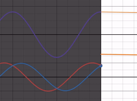 屈折率比を Max → 1 まで動かしてみると、反射波の振幅が 0 に近づいていきます。反射波の位相は屈折率比に依存せず、常に入射波と位相差が であることに注意してください( 切片などに注目すると位相が変化していないことが分かる)。