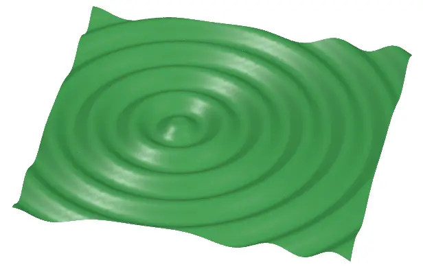 図のように、中心(波源)が先ほどとずれた緑色の水面波が表示されたはずです。